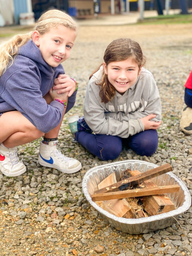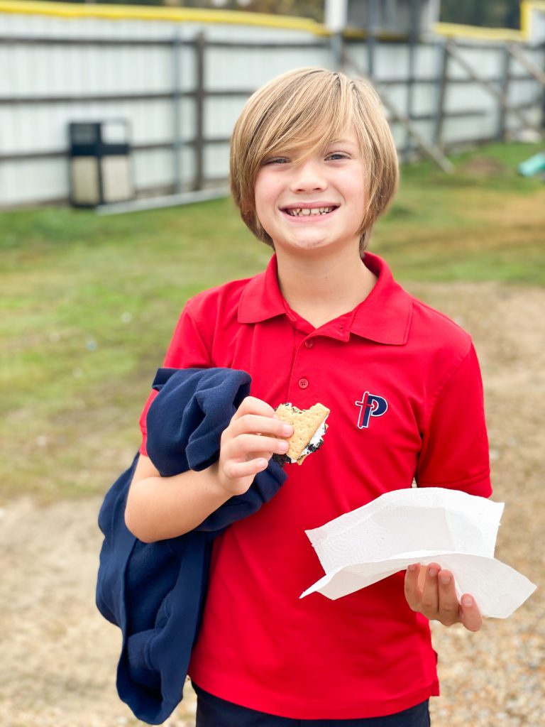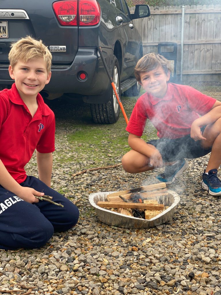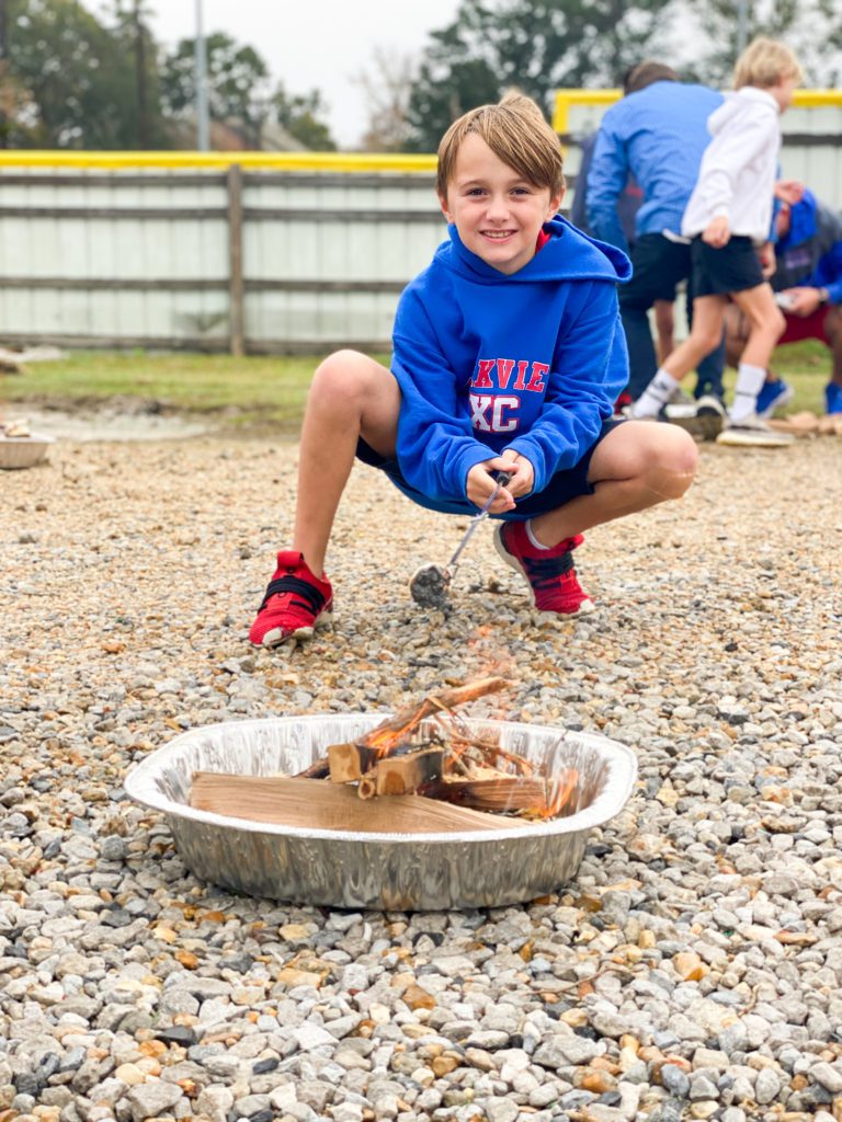 PBS Elementary students in the Outdoors Club and Cooking Club enjoyed a fun campfire experience during Club Hour this week. The Outdoors Club, led by Mr. Daniel McCulloch, learned the key elements to building a safe outdoor fire. Each group built their fires using an enclosed space, small kindling, larger logs and plenty of oxygen. Mr. McCulloch went around to each group once their campfire was built and provided the most important element – a flame! The students were excited to see their campfire come to life to provide warmth and a heating element for cooking. Today, the fires were put to good use by the Cooking Club who then joined the group with smores ingredients. The Cooking Club, led by Mrs. Beth Tidwell, roasted marshmallows on their friends fires and then assembled smores which were enjoyed by all! What a fun day in Elementary Clubs!