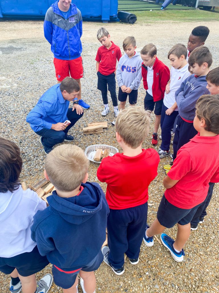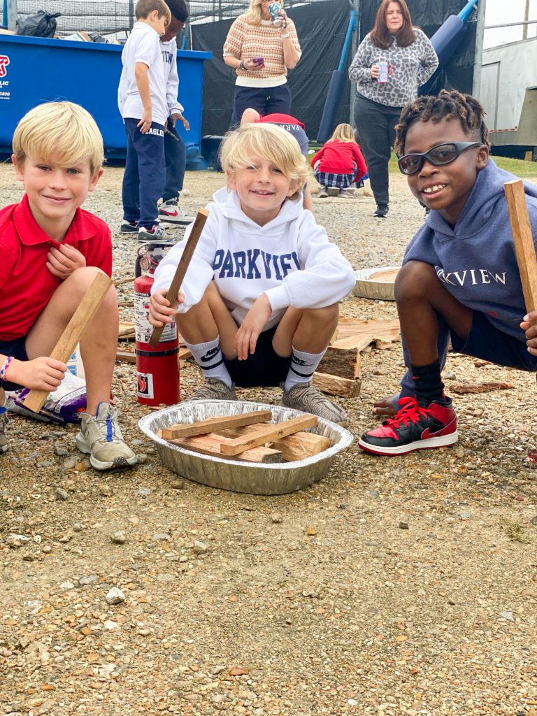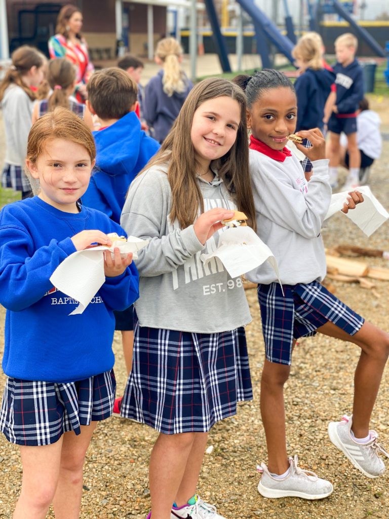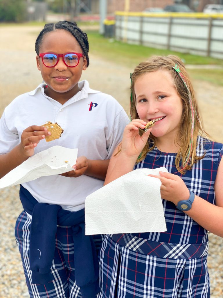PBS Elementary students in the Outdoors Club and Cooking Club enjoyed a fun campfire experience during Club Hour this week. The Outdoors Club, led by Mr. Daniel McCulloch, learned the key elements to building a safe outdoor fire. Each group built their fires using an enclosed space, small kindling, larger logs and plenty of oxygen. Mr. McCulloch went around to each group once their campfire was built and provided the most important element – a flame! The students were excited to see their campfire come to life to provide warmth and a heating element for cooking. Today, the fires were put to good use by the Cooking Club who then joined the group with smores ingredients. The Cooking Club, led by Mrs. Beth Tidwell, roasted marshmallows on their friends fires and then assembled smores which were enjoyed by all! What a fun day in Elementary Clubs!
