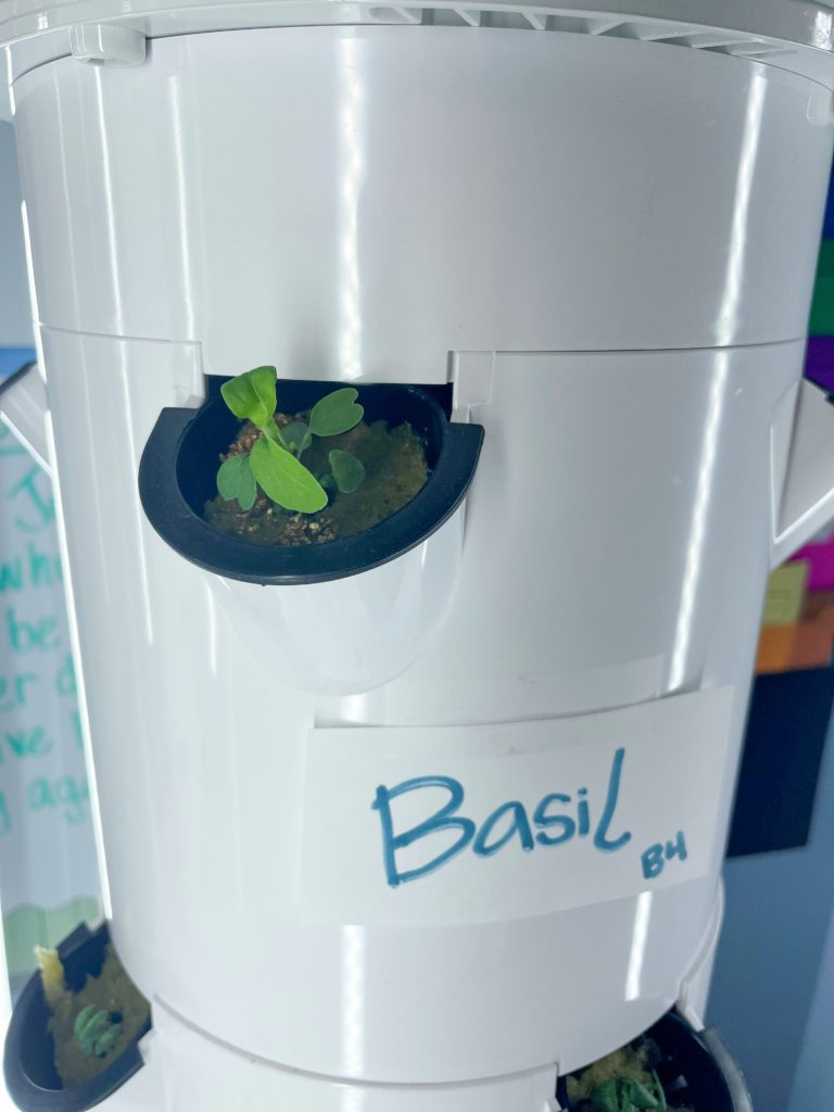 In 5th grade science, we spend the year learning about our environment and ways that we can make a positive and negative impact on the ecosystem around us. Earlier in the year, our students went to Sugar Roots Farm in New Orleans and planted seeds in their farm. We are now able to plant and see the growth in our own classroom thanks to the purchase of our Tower Gardens from our PBS PTF. The students can be a part of the growing process from seed to plant as they learn about the nutrients and elements these plants need for survival. The students are growing basil and three different types of lettuce. We are excited to bring the outdoor classroom indoors and bring real life to our learning.