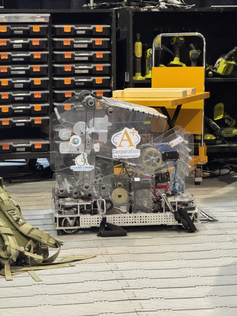 The Bulahbots compete in the FIRST Robotics Challenge (firstinspires.org), where students design, build, and program a fully functional robot. This year’s robot weighs approximately 100 pounds and is designed to pick up and launch 6-inch foam balls up to 10 feet in the air into a target hub. During the competition, the team successfully re-programmed their autonomous mode to collect balls from the floor and score them automatically before switching to driver control using an Xbox controller. In one match, their alliance scored an impressive 269 balls in just two and a half minutes.